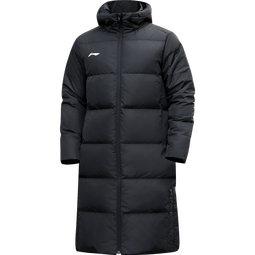 李宁羽绒服男女同款冬季中长款过膝防风保暖加厚连帽学生运动外套大袄 经典黑-长款连帽·80%含绒量/防风保暖 S