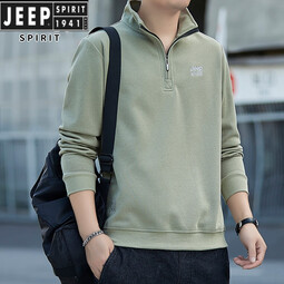 JEEP SPIRIT吉普纯棉卫衣男士春秋季新款宽松大码立领半拉链休闲套头长袖上衣 浅绿 M 80-100斤