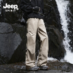 JEEP SPIRIT吉普冲锋裤男2025秋季新款伞兵休闲裤子男宽松直筒工装长裤 卡其色 M (建议90-107斤)