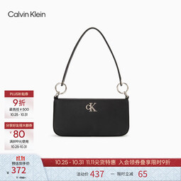 Calvin Klein时尚腋下包礼物通勤洋气包包金属字母拉链CK女包单肩法棍包DH3237 001-太空黑 OS