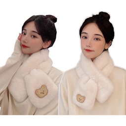 围巾女秋冬季韩版毛毛可爱保暖毛绒小熊2024冬新款白色时尚围脖潮 可爱小熊围巾-白色 1