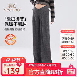 英氏孕妇裤加绒加厚低腰托腹阔腿裤外穿休闲直筒裤 深灰色 M