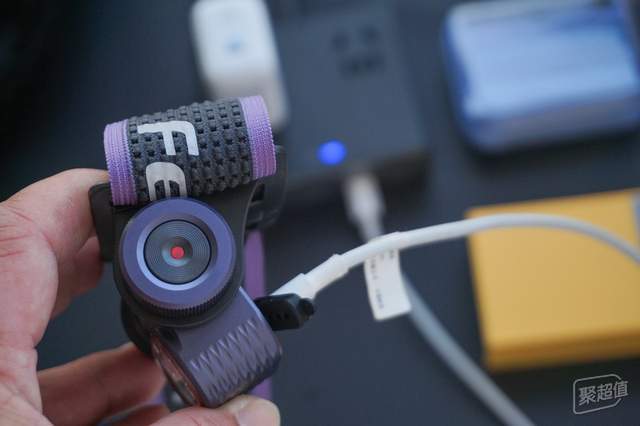 侧面集成调光电量显示功能,头灯使用type c充电口,可以用充电器或者充电宝为其提供快速充电,只需2.5个小时便能满血复活。
