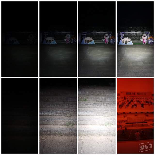 三种光源实拍效果,上方为聚光模式,下方分别展示泛光与红光模式。三光源的设计方案,让HM55R能适应更多场景。聚光,泛光,红光,户外运动的你可根据不同场景自由切换,妥妥的一灯在手,户外照明不愁。