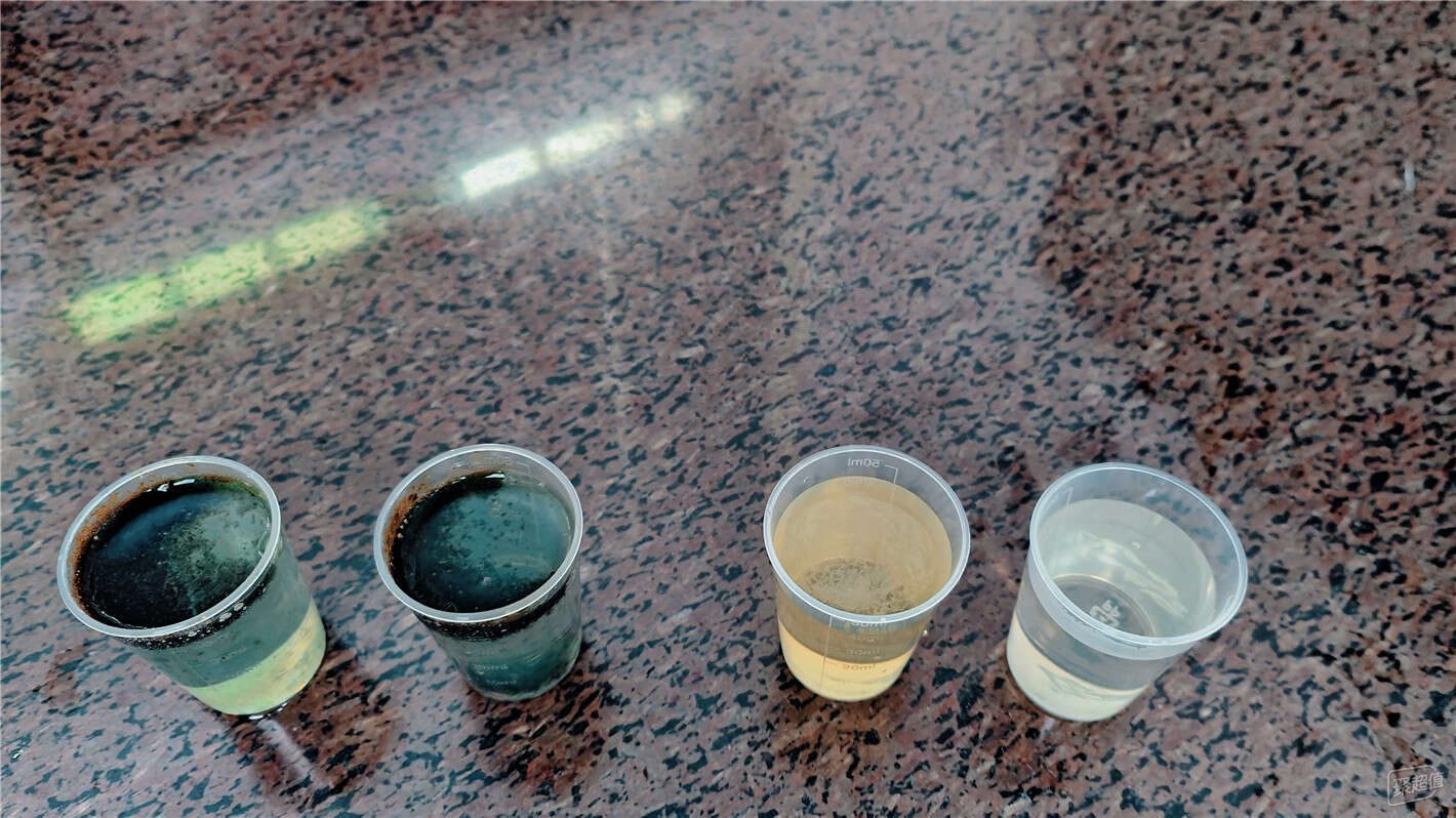 前两杯水经过电解后,呈现黑色化学反应,这种黑色反应其实只能证明水里含有的元素过高,可以是重金属、可以是沙土、也可以是有益元素过高,导制电解设备的铁棒、锌棒导电性增强,从而产生金属反应,并不代表不能喝,只能说稍差而已,至于是否有细菌成分,这个得专业实业室才能做到。当然,对于这种结果,也不用太过担心,也许只是某些元素稍高而已,只是相对来说,对于人体吸收会有些许营养不平衡,有条件的也是该尽快加装净水器改善一下质量。