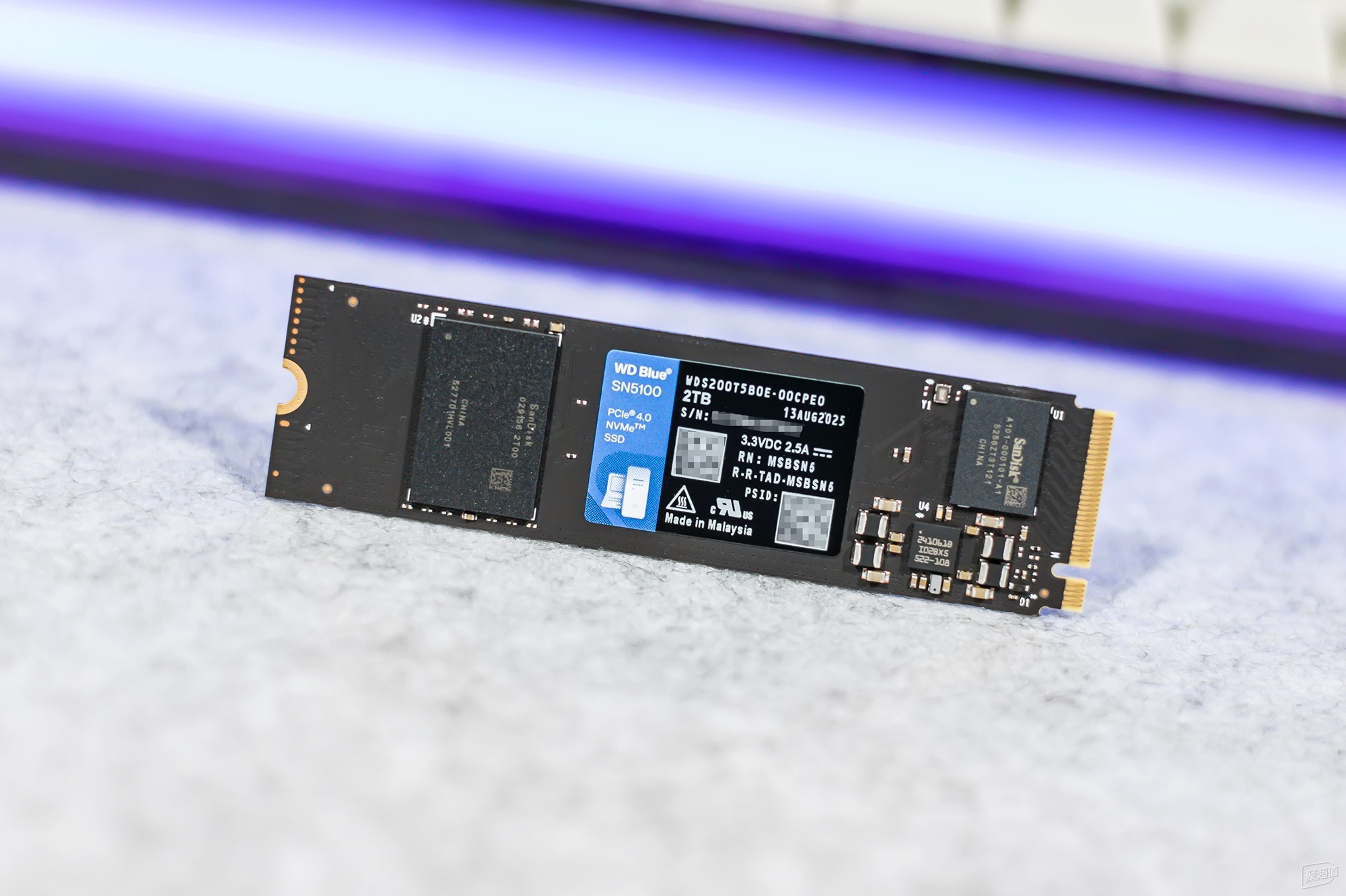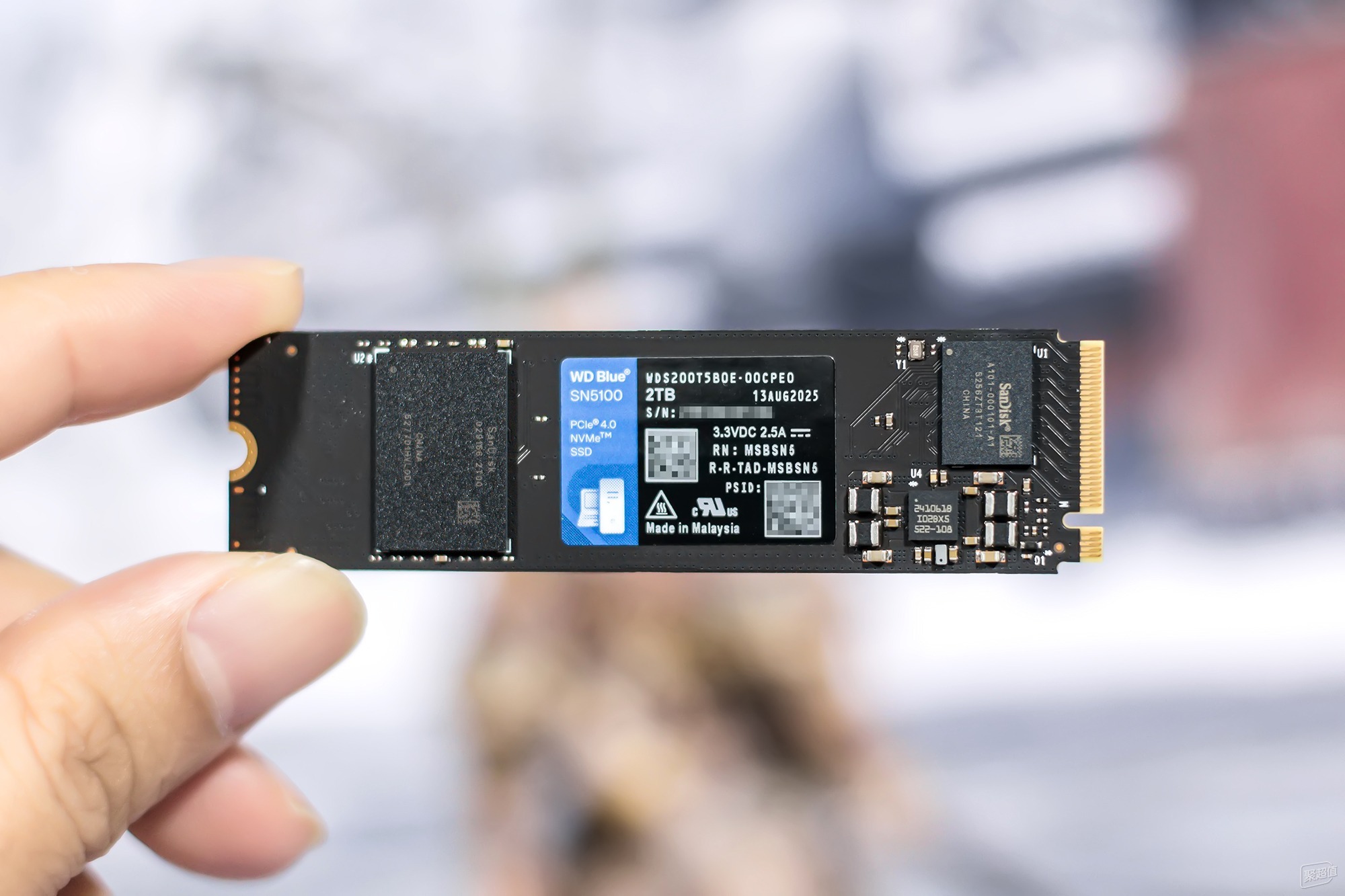 本人经常会拍摄4K超高清视频素材,然后将视频文件导出到电脑中进行编辑处理,无疑会占据不小的存储空间,还有游戏数据也不容忽视,动辄几十上百GB,重要数据往往无法轻易删除,电脑的存储空间便渐渐告急,面对一困这境让人不得不想办法给电脑扩容,作为数据存储盘,容量必须足够大,高速且稳定的读写性能,闪迪最新出品的 SN5100 2TB固态硬盘属于WD Blue系列最新一代产品,其采用PCIe4.0×4传输规格,顺序读取速度达到7100MB/s,接下来对固态硬盘进行多项测试,看看读写性能表现究竟如何。