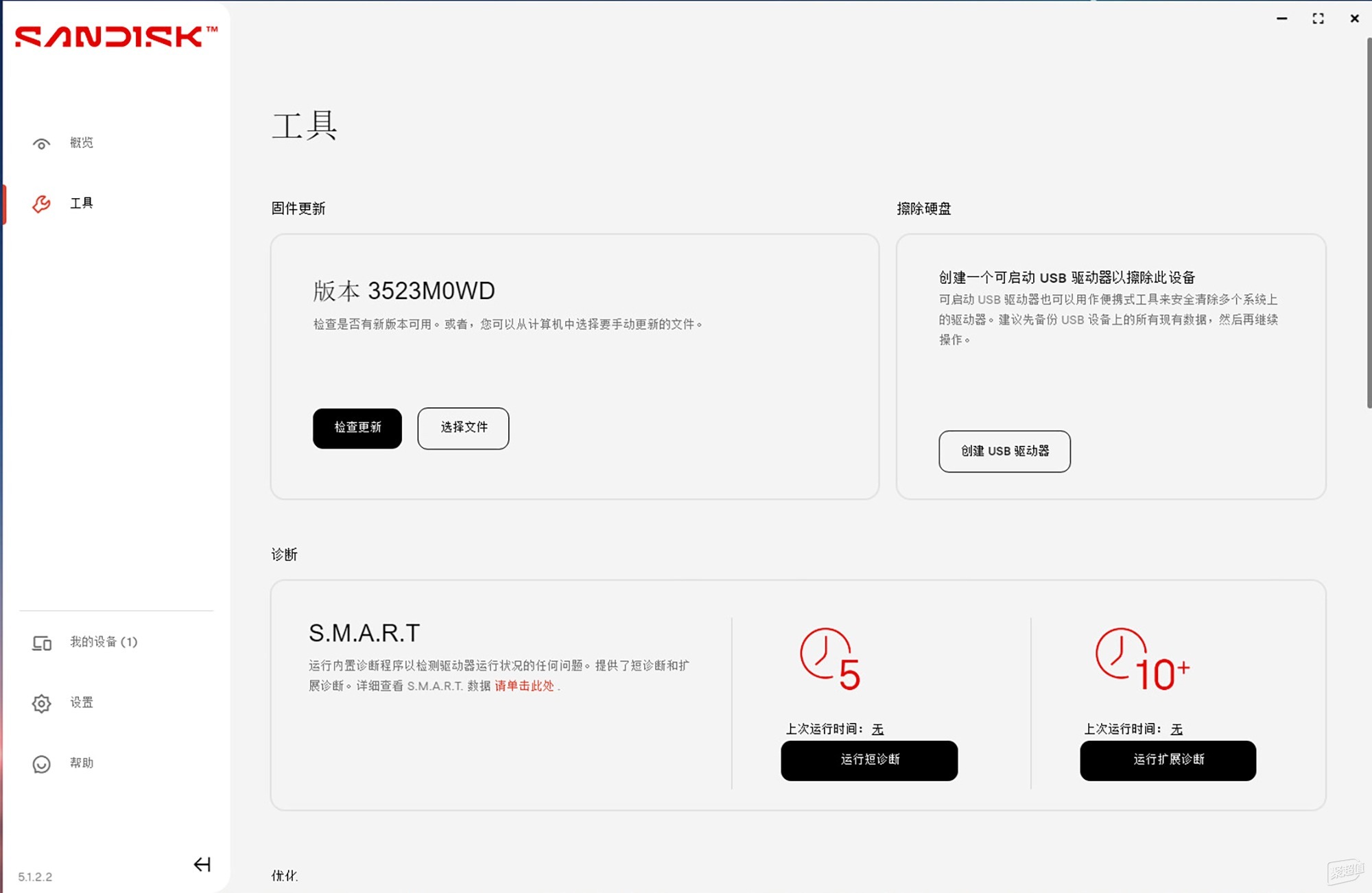用户也可通过专属的Sandisk Dashboard仪表盘工具快速了解固态硬盘运行状态,包括当前温度容量与读写速度等关键信息,此外还可通过软件对固态硬盘进行固件升级优化性能,或者安全擦除固态硬盘数据,使固态硬盘恢复到出厂状态确保数据安全,设置写缓存功能或者开关Windows的TRIM功能。