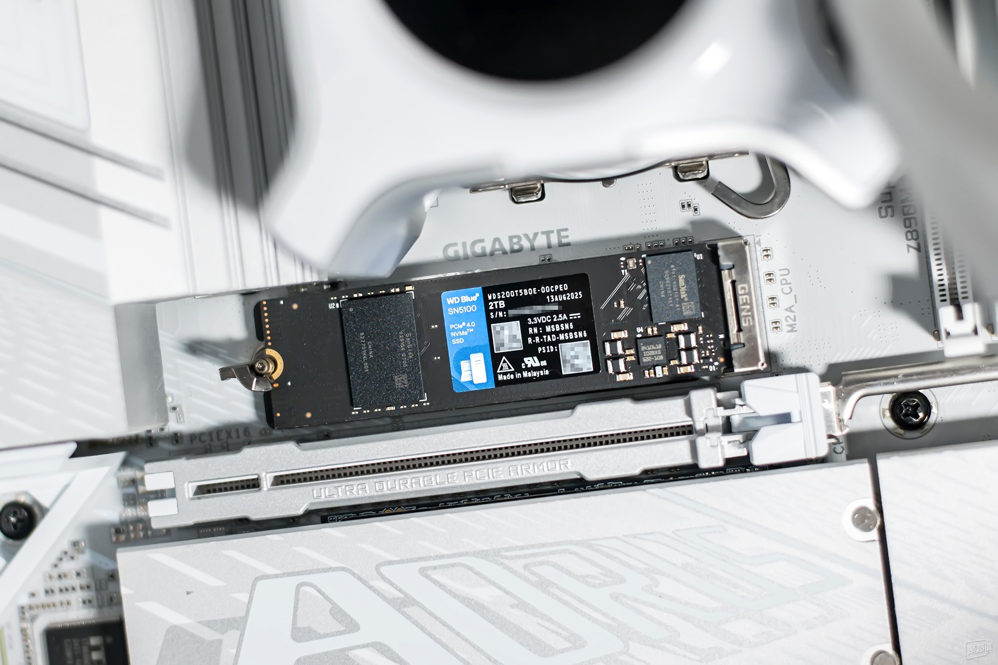 接下来闪迪WD Blue SN5100固态硬盘进行读写性能实测,本次会在Intel平台上测试,处理器为Intel Ultra7 265K搭配Z890M芯片组主板,所有性能测试均在该平台上进行,除非另有说明,将固态硬盘安装主板的首个M.2插槽上,该插槽直连处理器并支持PCIe5.0传输规格。