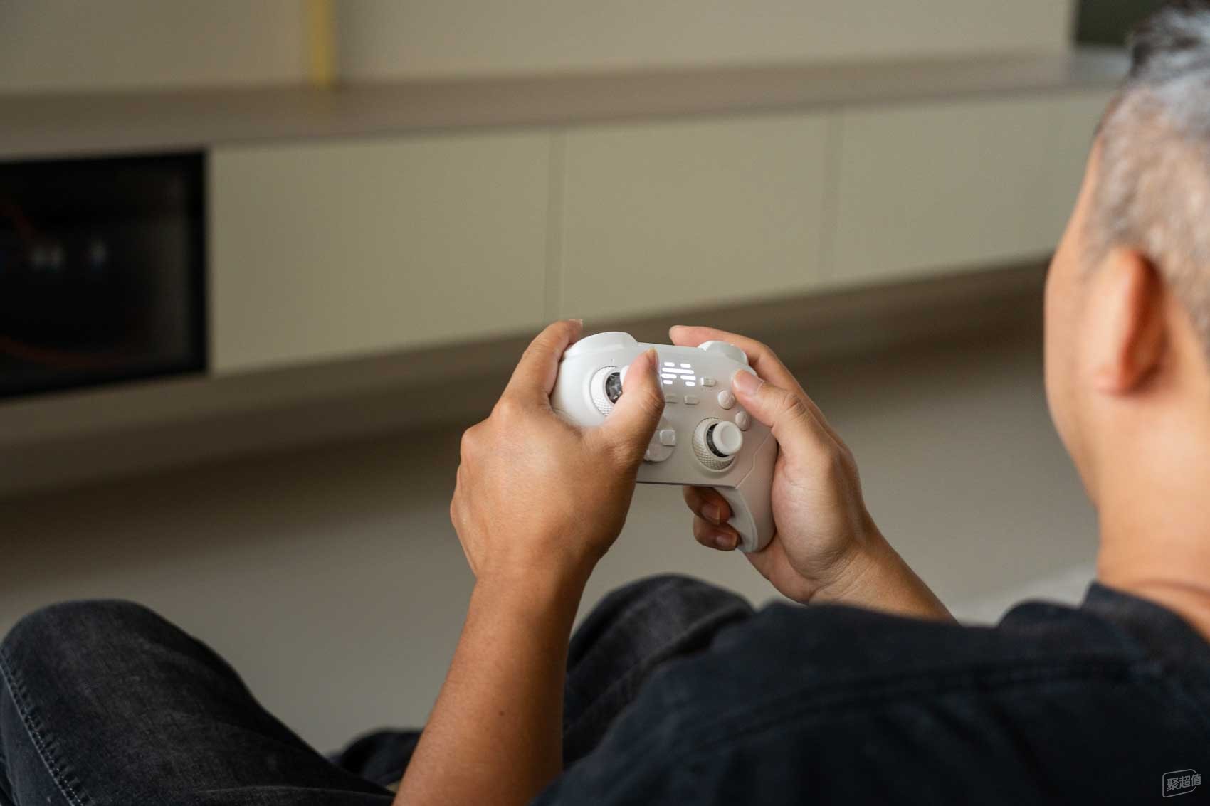 将其握入手中,第一个明确的感知信号来自于贴合掌心的饱满弧度与适中的重量分布——这种扎实且不费力的握持感,是判断一款手柄是否经过精心人体工学设计的最初依据。与此同时,目光所及之处的按键布局,采用了最为经典成熟的非对称结构,摇杆、十字键与功能区的排布都严格遵循着玩家的使用习惯,几乎不需要任何适应成本,这是一种让人安心的合理。