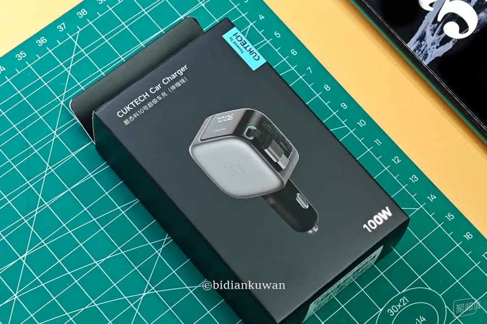 于是我有了酷态科10号超级车充,京东自营99块,2C1A自带线+数显屏,可同时三充,快充最高100瓦。给大家瞅瞅它长啥样吧。