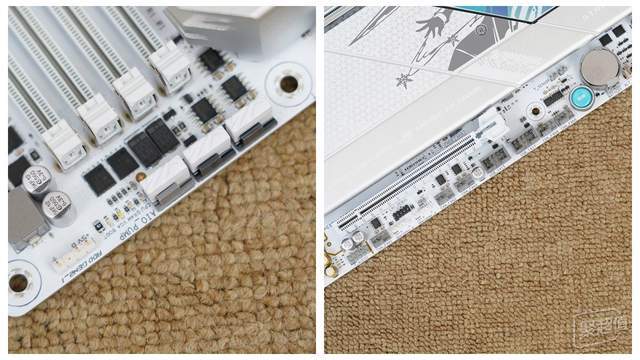X870吹雪S采用了全白色PCB设计,甚至连内存插槽都涂成了白色,散热马甲上采用了立绘图案,看起来也更加醒目,颜值和辨识度更高。