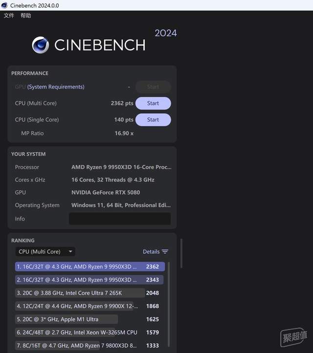 CPU方面,锐龙9 9950X3D不仅游戏性能非常出色,生产力性能同样非常不俗,属于目前桌面级几乎没有短板的存在。