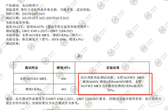 专业机构检测发现未野剃须刀刀片硬度比竞品普遍高出30%