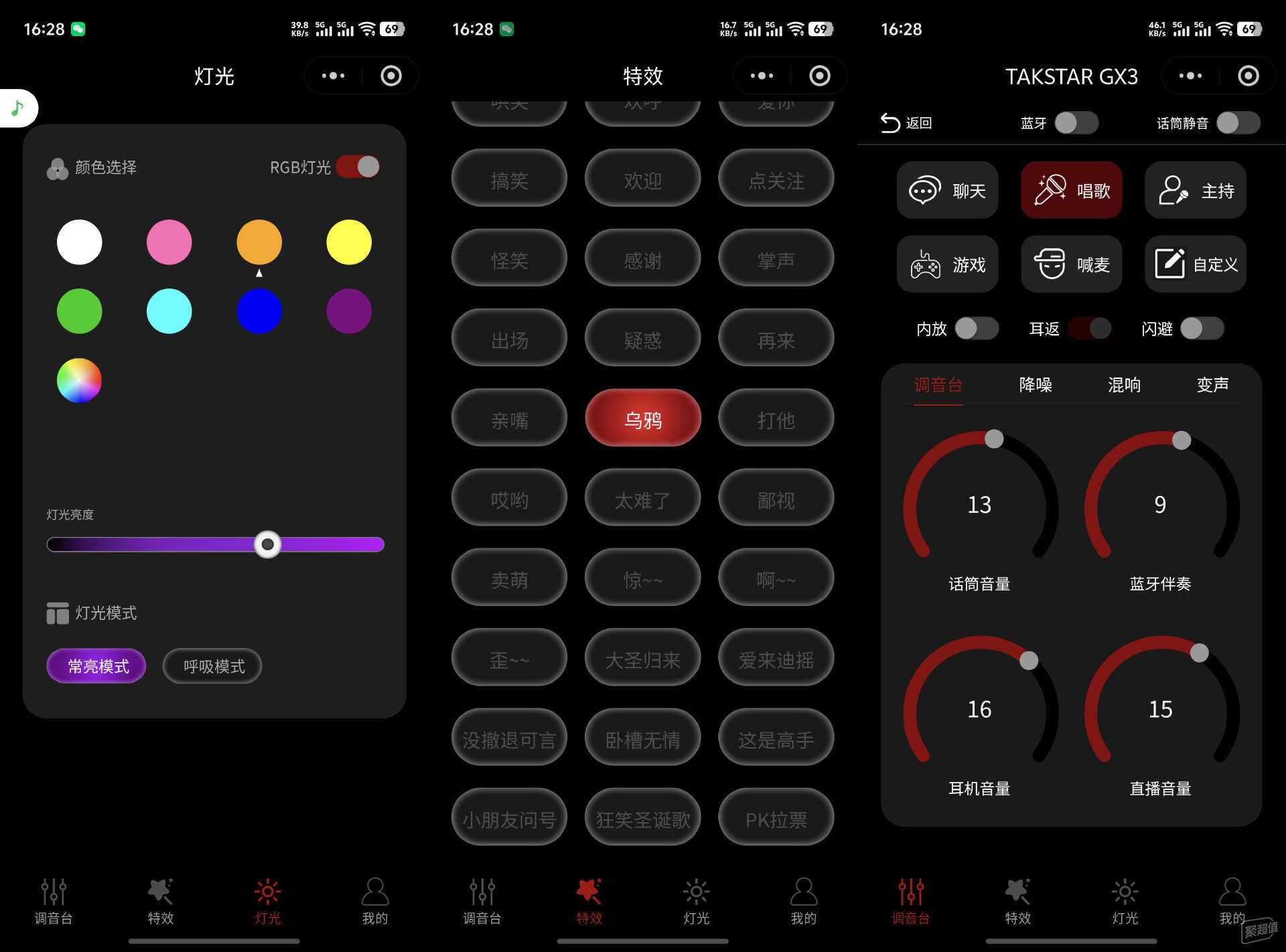 在使用这款麦克风之前,推荐下载官方指定的调音软件(手机端为小程序版),虽然大多数操作在麦克风上就可以完成,但通过软件调节会直观许多,而且软件内还有30多种氛围音可以选,简直是直播必备神器。